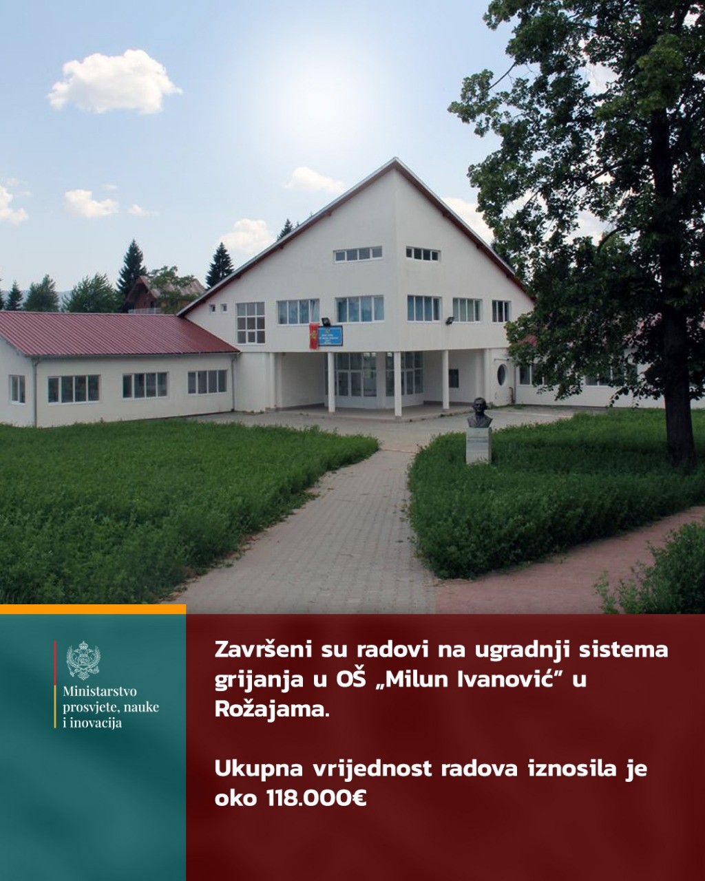 Završeni su radovi na instalaciji novog sistema grijanja u objektu JU OŠ „Milun Ivanović“ Rožaje, čime su obezbijeđeni bolji uslovi za boravak i rad učenika i nastavnika.