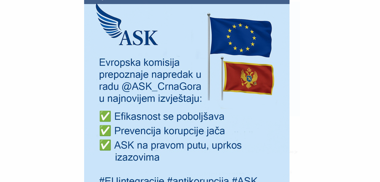 U najnovijem Non-paper izvještaju Evropske komisije za poglavlja 23 i 24, objavljenom u maju 2025. godine, Agencija za sprečavanje korupcije (ASK) prepoznata je kao institucija čija efikasnost nastavlja da se poboljšava, uprkos objektivnim izazovima koji su obilježili prethodni period, navedeno je u saopštenju.