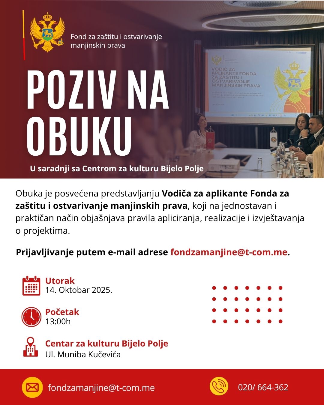 Bijelo Polje: Fond za zaštitu i ostvarivanje manjinskih prava poziva aplikante i korisnike sredstava da se prijave za obuku