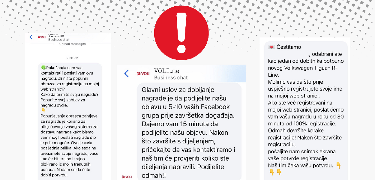 U pitanju su lažne poruke koje se odnose na trgovački lanac Voli, u kojima se korisnicima saopštava da su odabrani kao dobitnici vrijedne nagrade i da je potrebno da obave registraciju.