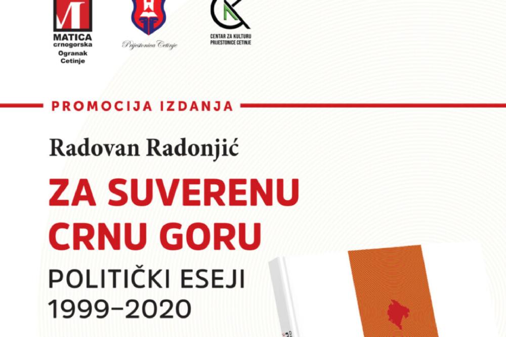 Knjiga „Za suverenu Crnu Goru (Politički eseji 1999–2020)“ profesora i politikologa Radovana Radonjića, koju je objavila Matica crnogorska, biće promovisana u srijedu, 27. novembra u 18 sati u Centru za kulturu Prijestonice na Cetinju. Promocija knjige je dio novembarskog programa obilježavanja Dana oslobođenja Cetinja.