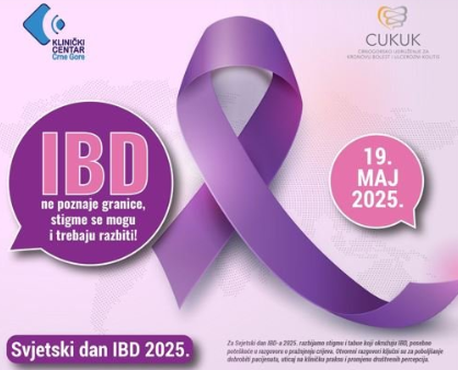 Svjetski dan protiv zapaljenskih bolesti crijeva (IBD) obilježava se svake godine 19. maja s ciljem podizanja svijesti o hroničnim zapaljenskim bolestima crijeva kao što su Kronova bolest i ulcerozni kolitis, navodi se u saopštenju KCCG.