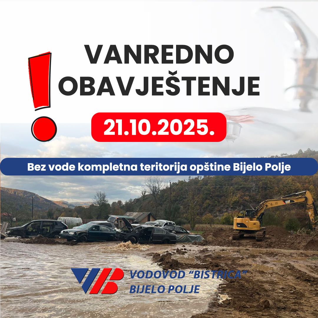 - Usljed građevinskih radova na privatnoj parceli u naselju Kruševo došlo je do oštećenja glavnog distributivnog cjevovoda ACC Fi 500 sa kojeg se snabdijeva kompletna teritorija opštine Bijelo Polje. Ekipa tehničke službe je na terenu i utvrđuju se okolnosti zbog kojih je došlo do havarije na glavnom distributivnom cjevovodu - navodi se u saopštenju.