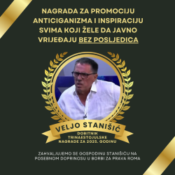 - U trenutku kada govorimo o najvećem državnom priznanju – Trinaestojulskoj nagradi – gospodin Stanišić koristi pripadnike romske zajednice kao pogrdnu metaforu, dodatno učvršćujući negativne stereotipe i predrasude koje Romi svakodnevno trpe u Crnoj Gori - saopštio je Elvis Beriša, izvršni direktor organizacije.