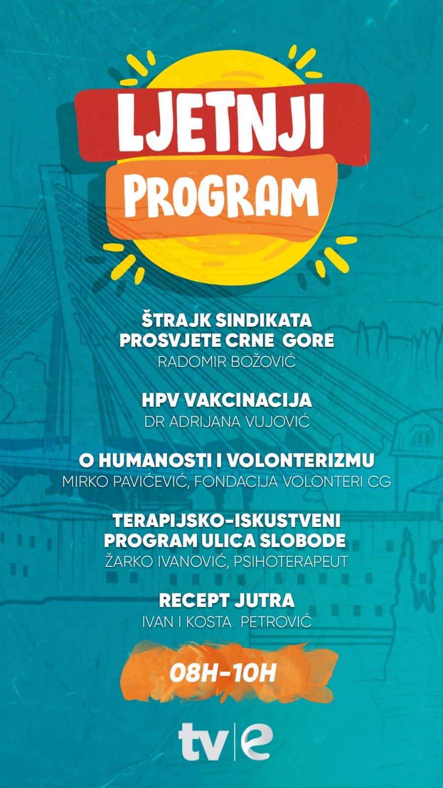 U jutarnjoj emisiji Ljetnjeg programa na Televiziji E brojne aktuelne teme i zanimljivi gosti. Na temu najavljenog štrajka Sindikata prosvjete Crne Gore razgovaramo sa Radomirom Božovićem.