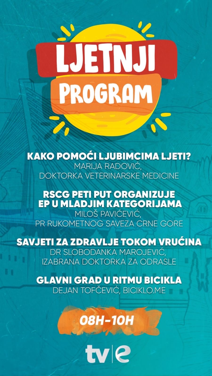 U ljetnjem programu na Televiziji E, sjutra ujutro, pitamo kako da tokom ljeta brinemo o zdravlju – svom, ali i naših ljubimaca? Razgovaramo sa dr Slobodankom Marojević, izabranom doktorkom za odrasle, koja donosi praktične savjete za prevenciju i očuvanje zdravlja, a pridružuje nam se i Marija Radović, doktorka veterinarske medicine, koja otkriva šta sve treba da znamo da bi naši kućni ljubimci bezbrižno prošli visoke temperature.