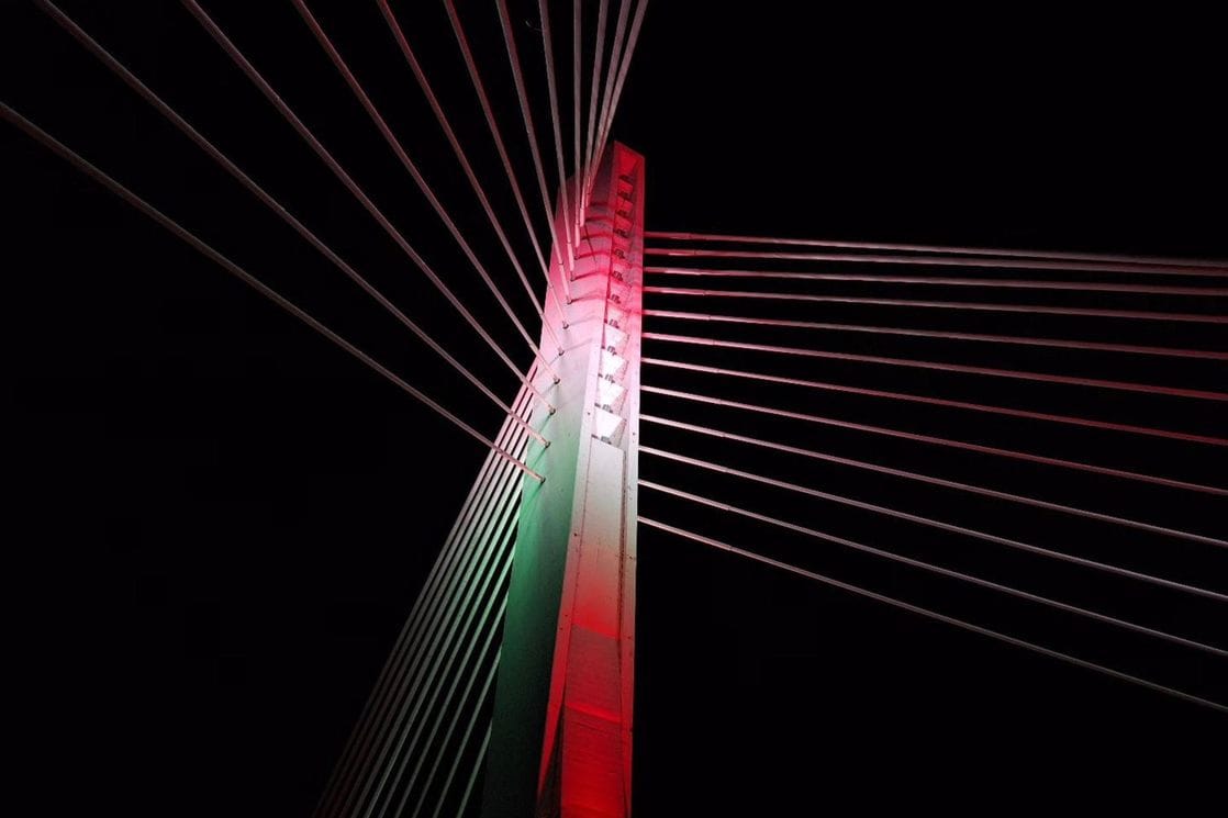 Most Milenijum u Podgorici večeras je osvijetljen crvenom i zelenom bojom, kao simbol podrške palestinskom narodu.