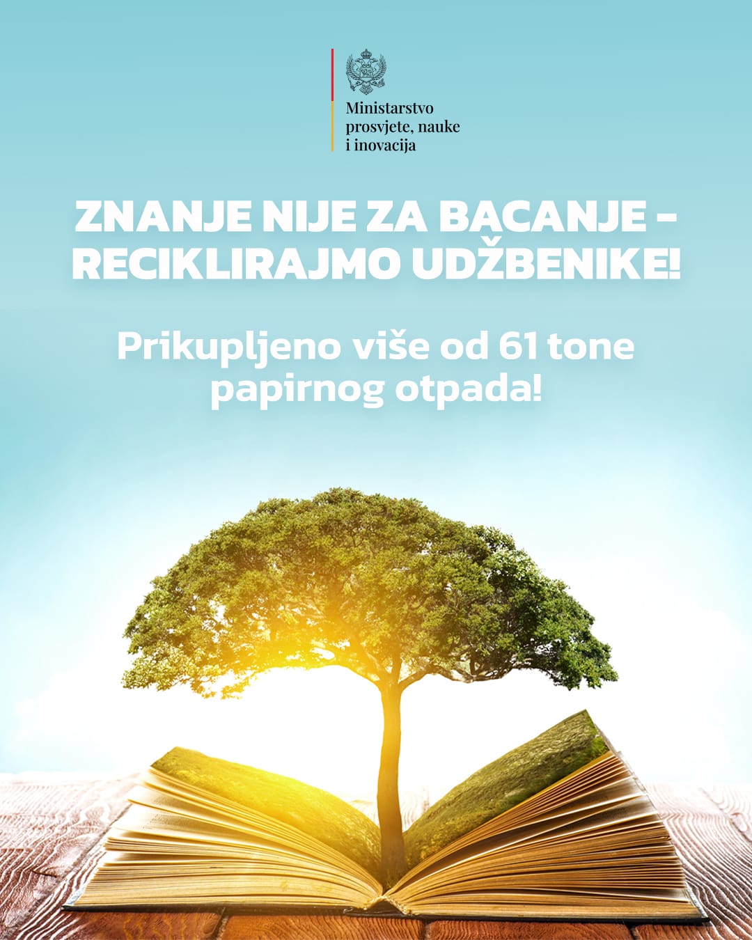 Ministarstvo, Deponija d.o.o. i Udruženje "Roditelji" zahvaljuju svim školama, učenicima i roditeljima na učešću i pozivaju da se tradicija reciklaže udžbenika nastavi i narednih godina.