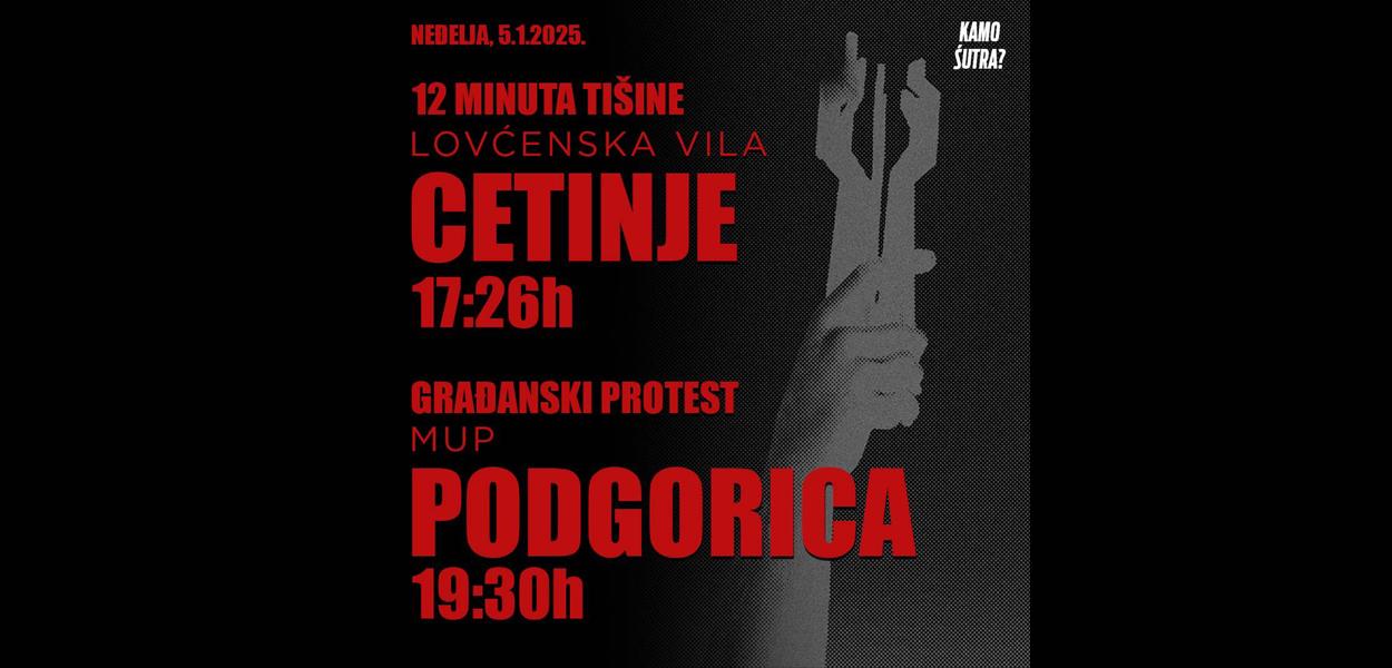 Neformalna grupa studenata „Kamo śutra?“ pozvala je građane da danas u 17 sati i 26 minuta ispred spomenika Lovćenska vila na Cetinju dvanaestominutnom ćutnjom odaju poštu stradalima u tragediji u tom gradu, ali i na protest u Podgorici koji će početi ispred zgrade Ministarstva unutrašnjih poslova (MUP) u 19.30 sati.