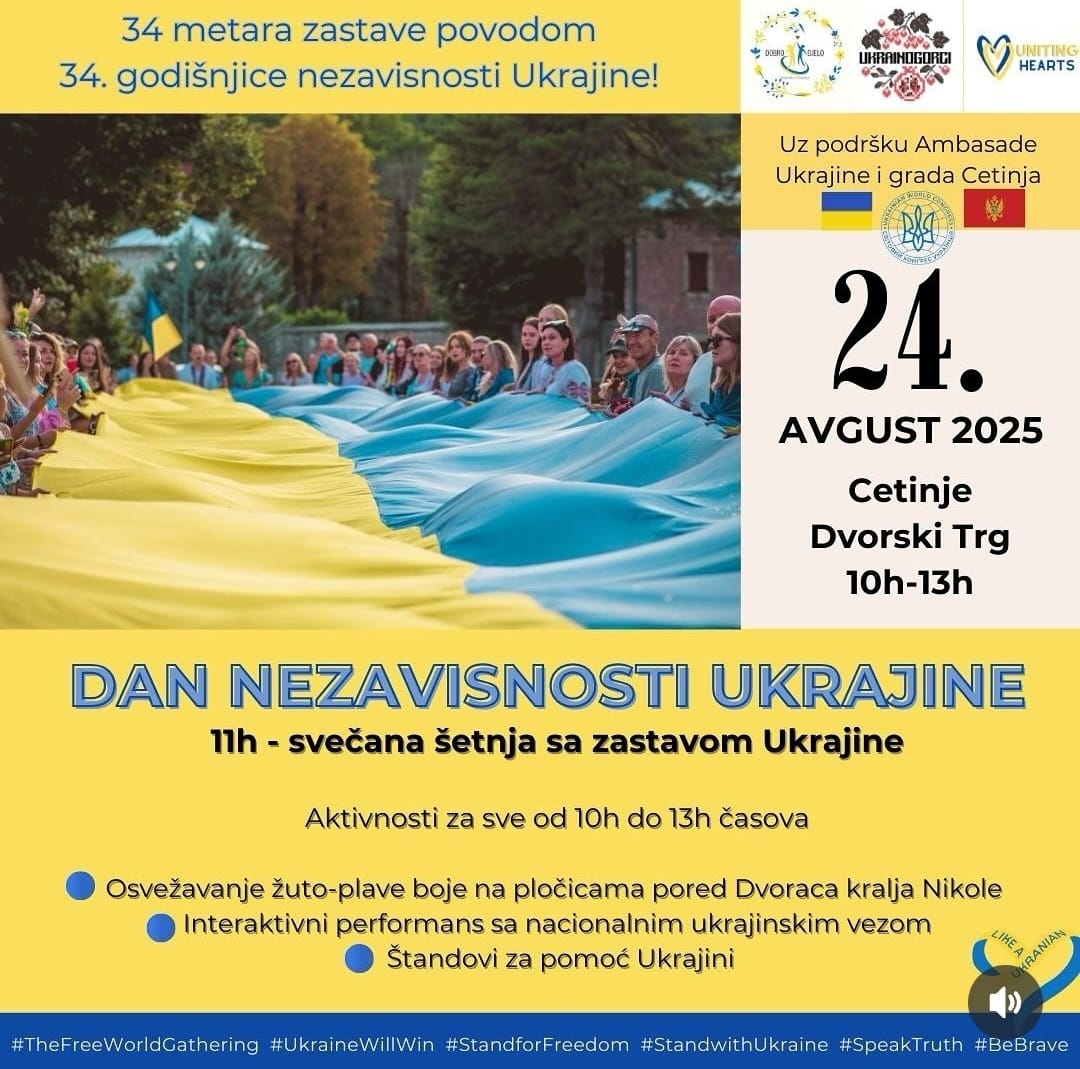 Događaj organizuju NVO „Ukrajinogorci“, đečja zajednica Uniting Hearts, uz podršku Ukrajinskog udruženja „Dobro Djelo“, Ambasade Ukrajine u Crnoj Gori i grada Cetinja.