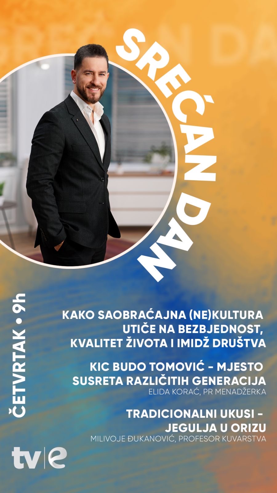 U emisiji Srećan dan od devet do 11 sati govorimo o saobraćajnoj nekulturi i kako to utiče na bezbjednost, kvalitet života i imidž društva.