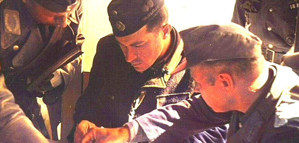 - „Poručnik Risto (ili natporučnik po hrvatskom) uvede me u kuću i ponudi sjesti dok on u nekoliko minuta prikupi ostale časnike. Svi posjedasmo oko dugačkoga stola u predsoblju seljačke”.