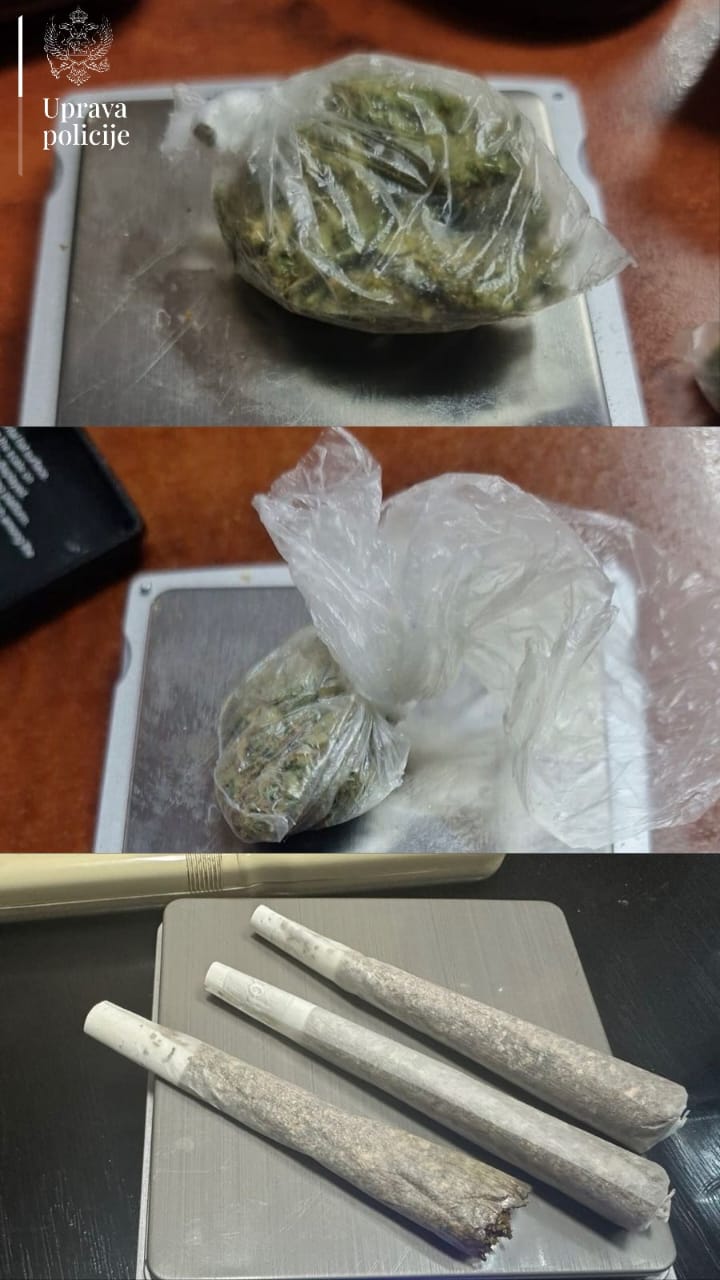Budvanin F.J. (30) je takođe kontrolisan, a kod njega su pronađene tri ručno pravljene cigarete sa marihuanom. I protiv njega je podnijet zahtjev za pokretanje prekršajnog postupka zbog prekršaja iz Zakona o sprečavanju zloupotrebe droga.