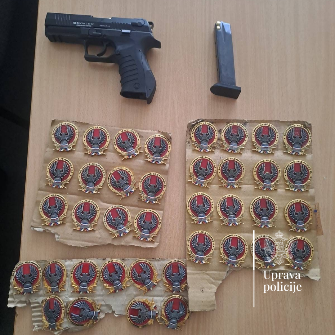 Tokom kontrole u Nikšiću, 28. juna, policija je kod D.S. pronašla startni pištolj i 38 vojnih znački. U nastavku aktivnosti, službenici Odjeljenja bezbjednosti Danilovgrad, u saradnji sa kolegama iz OB Podgorica i OBD Ministarstva odbrane, izvršili su pretres stana i pomoćnih prostorija u Ćurilcu, koje koristi osumnjičeni.