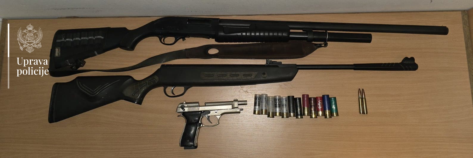 Tom prilikom, navodi se u saopštenju, postupajući po naredbi Osnovnog suda u Nikšiću, policijski službenici Odjeljenja bezbjednosti Nikšić izvršili su pretres stana i drugih prostorija koje koristi lice M.S.(31) prilikom kojeg su pronađene i oduzete jedna lovačka i jedna vazdušna puška, startni pištolj kao i više komada municije različitog kalibra.