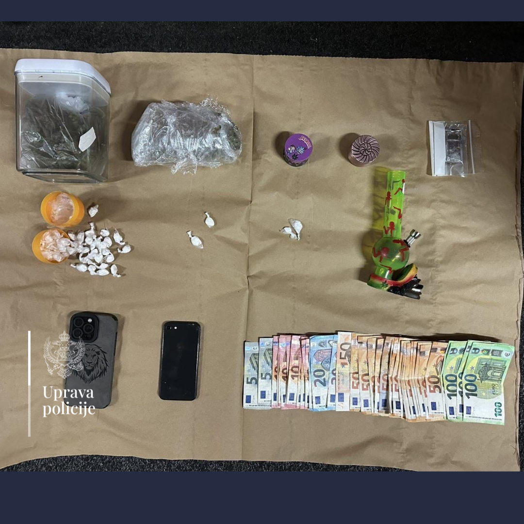 Službenici Regionalnog centra bezbjednosti „Jug“, Odjeljenja bezbjednosti Budva su, vršeći pojačane planske aktivnosti iz svoje nadležnosti usmjerene na suzbijanje ulične prodaje opojne droge, izvršili pretres stana i drugih prostorija stana koji koristi A.P. (24) iz Podgorice u mjestu Rafailovići, saopšteno je iz Uprave policije.