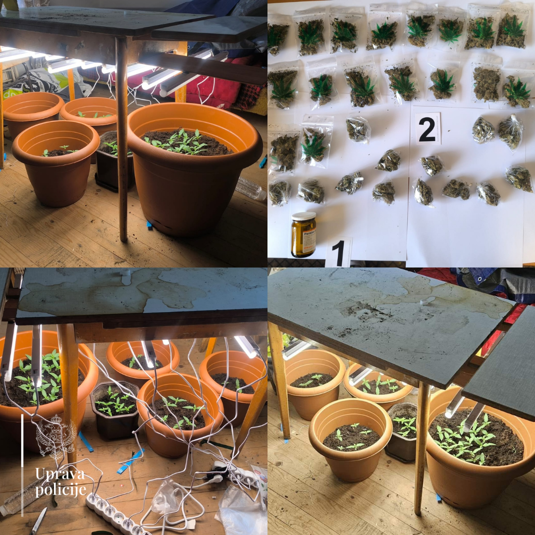 U naselju Dolac policija je pronašla 30 pakovanja sa sadržajem za koji se sumnja da je opojna droga marihuana, ukupne mase oko 100 grama. U selu Veliđe otkrivena je improvizovana laboratorija za uzgoj marihuane, u kojoj je pronađeno 50 sadnica stabljika kanabisa, prateća oprema neophodna za uzgoj, kao i 33 sjemenke ove biljke.