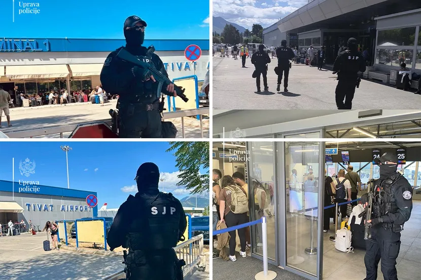 Samo su neki od naslova koji su danas uz fotografije Uprave policije Crne Gore sa Aerodroma u Tivtu objavljene na regionalnim portalima, a na kojima se vide specijalne jedinice sa dugim cijevima raspoređene na ovom aerodromu.