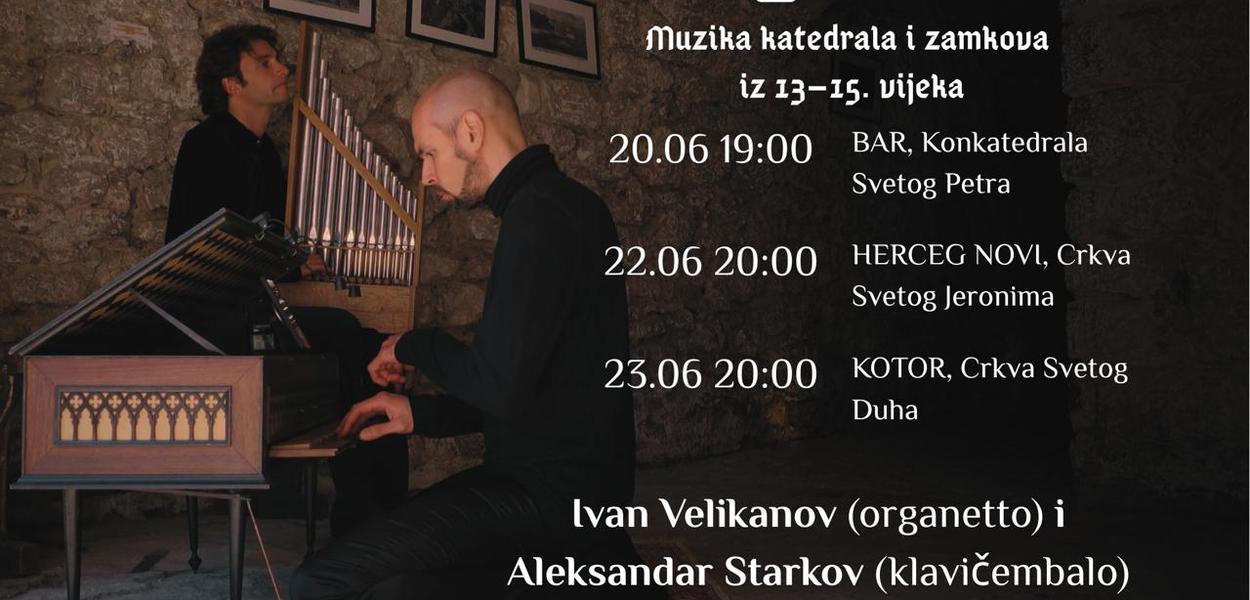 Dirigent, kompozitor i multiinstrumentalista Ivan Velikanov (organet) i multiinstrumentalista i improvizator, pronalazač i stvaralac brojnih jedinstvenih muzičkih instrumenata Aleksandar Starkov (klavičembalo) održaće koncerte rane muzike gotičke ere (XIII-XV vijek) u Baru, Herceg Novom i Kotoru.