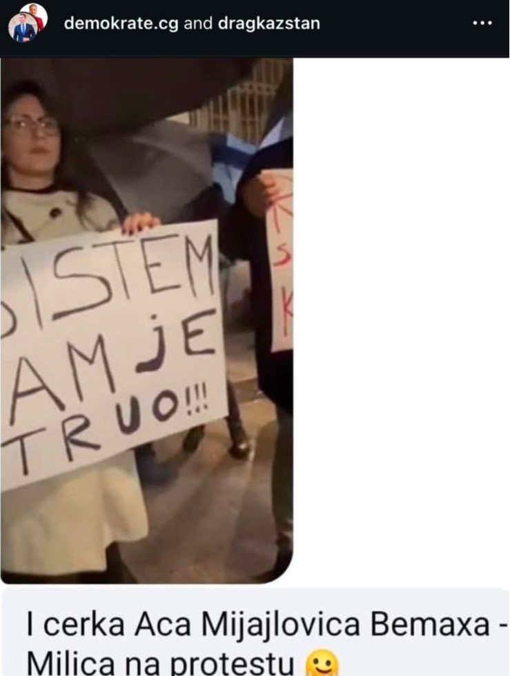 U besprizornoj i veoma opasnoj kampanji targetiranja pojedinaca Demokrate su pokušale da, preko prošlog protesta ispred zgrade Vlade, večerašnji povežu sa kompanijom „Bemax“. Izdvojili su fotografiju građanke sa transparentom i targetovali je kao kćerku biznismena Aleksandra Mijajlovića.