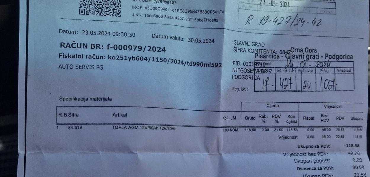 Šef Kluba odbornika Demokratske partije socijalista (DPS) u Skupštini Glavnog grada Andrija Klikovac objavio je fakture nabavki akumulatora za jedno vozilo u veoma kratkom vremenskom roku.