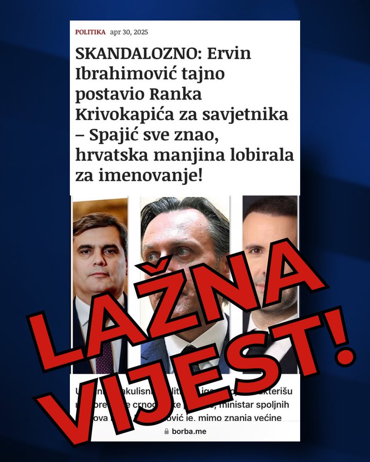 - Lažna vijest: Spajić nije znao jer Krivokapićeva pozicija ne predstavlja imenovano lice na Vladi, već se postavlja direktno odlukom ministra. Ibrahimović će biti pozvan na konsultacije oko ovog neprihvatljivog imenovanja- objavljeno je na X nalogu PES protiv lažnih vijesti, a koju je podijelio i sam premijer.