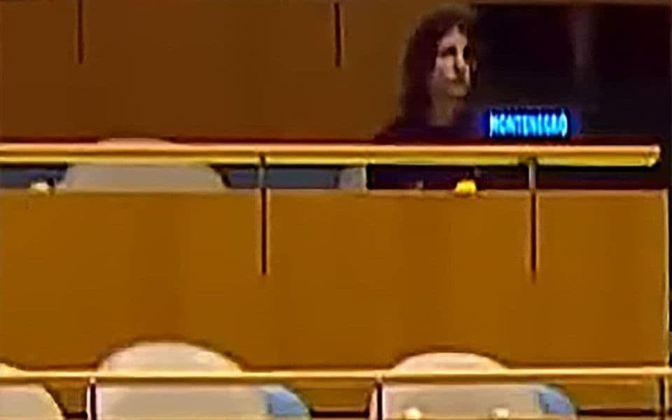 Tokom govora izraelskog premijera Benjamina Netanjahua, u sali Generalne skupštine Ujedinjenih nacija, na mjestu predviđenom za delegaciju Crne Gore, nije sjedio niko od diplomata Crne Gore niti drugih članova delegacije, već stažistkinja koja obavlja praksu u Misiji Crne Gore pri UN, pojasnili su iz Ministarstva vanjskih poslova za Pobjedu.