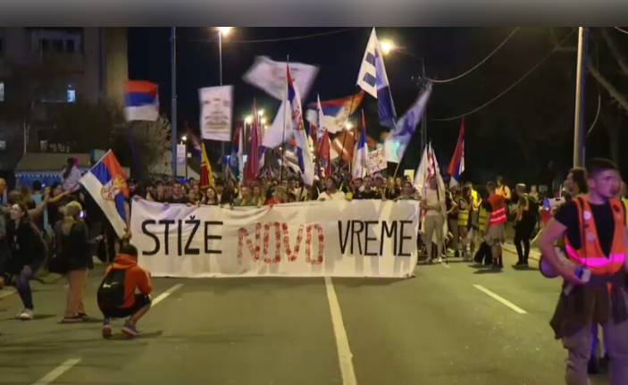 Hiljade građana je na ulicama Bograda gdje dočekuju mlade koji su do glavnog grada pješačili iz mnogih krajeva Srbije, kako bi prisustvovali sjutrašnjem velikom protestu.