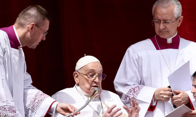 Poglavar Rimokatoličke crkve papa Franjo ponovio je poziv na hitno primirje u Pojasu Gaze u uskrsnoj poruci koju je pročitao njegov pomoćnik, dok je papa, koji se oporavlja od teške upale oba plućna krila, nakratko posmatrao događaj s glavnog balkona Bazilike svetog Petra.