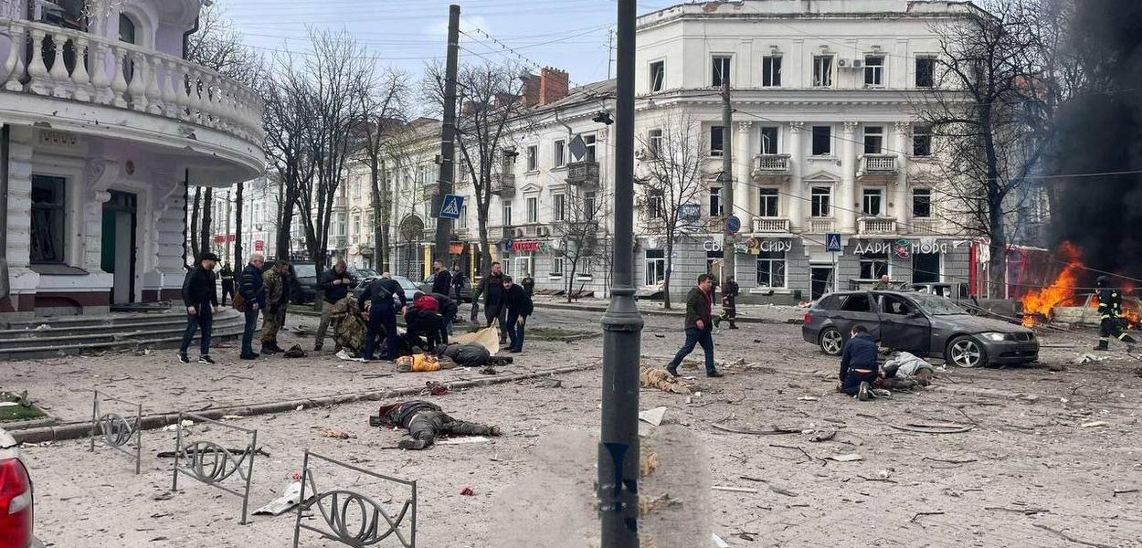 Prve slike s terena prikazuju uništene civilne objekte i vozila u strogom centru grada, a prema prvim informacijama, među pogođenim je vozilima i gradski trolejbus.