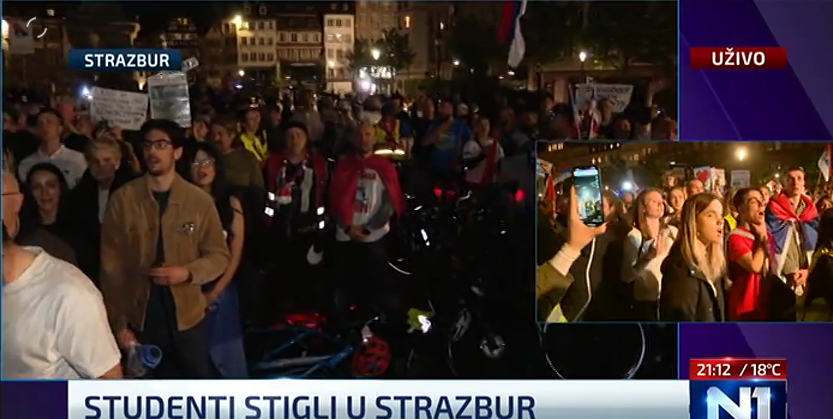 Grupa od 80 studentkinja i studenata je iz Novog Sada put Strazbura krenula 3. aprila da bi se obratili nekim od najvažnijih evropskih institucija i da im ukažu na svoje zahtjeve, kao i na „istrajnost i posvećenost studenata u borbi za pravdu" u Srbiji.