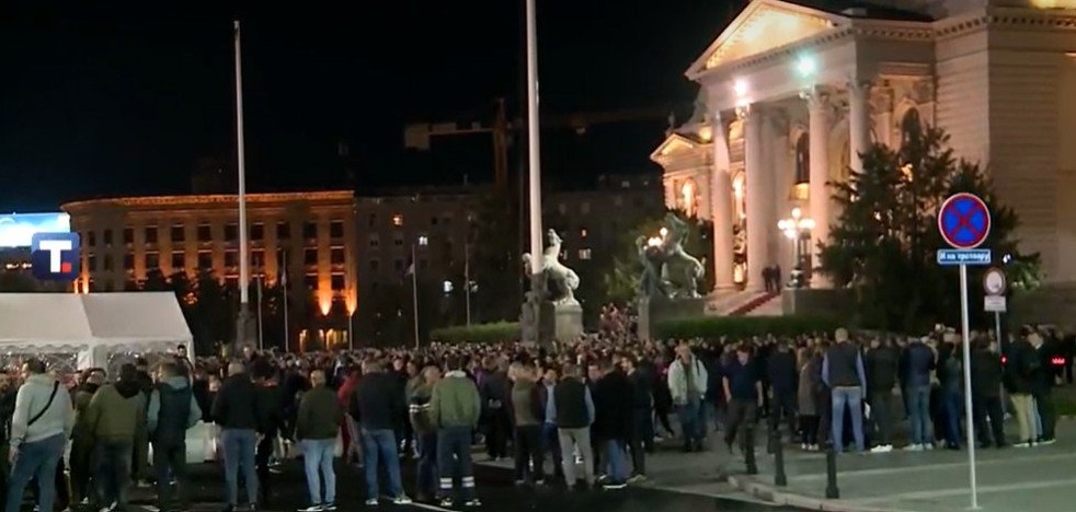 Predsjednik Srbije Aleksandar Vučić danas se pridružio građanima ispred Narodne skupštine koji pružaju podršku Milanu Bogdanoviću, muškarcu ranjenom u incidentu u „Ćacilendu“.