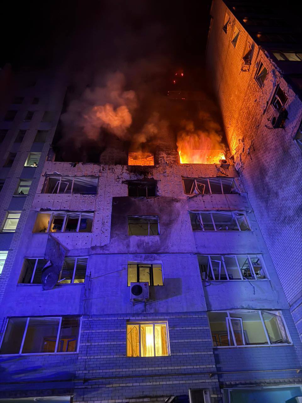 Ministarstvo unutrašnjih poslova Ukrajine navelo je kako su komadi drona ubile dva muškarca i jednu ženu u središnjoj regiji Kijeva te da je još jedna osoba povrijeđena. U napadu je oštećena stambena višespratnica, osam privatnih kuća, komercijalni objekti i nekoliko privatnih automobila, rekli su kijevski mediji.