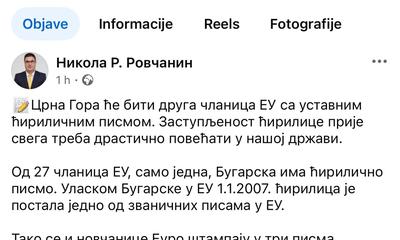 Rovčanin: Crna Gora će biti druga članica EU sa ustavnim ćiriličnim pismom