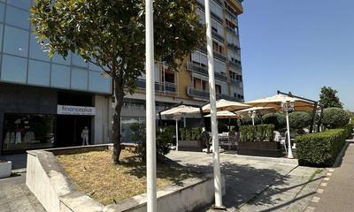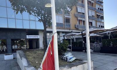 Gorak prizor: Crnogorska zastava u Ulici Džordža Vašingtona zgužvana pri dnu jarbola
