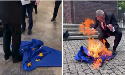Katovice: Poljski krajnje desni europarlamentarac obrisao cipele o EU zastavu, pa je zapalio