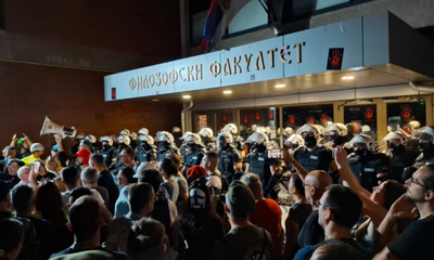 Skup ispred Filozofskog fakulteta u Novom Sadu, jako prisustvo policije