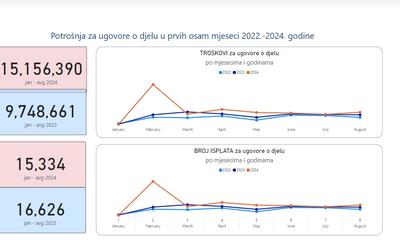 Naknade za ugovore o djelu u avgustu iznose 1.67 miliona eura - za 25 odsto više nego prošle godine