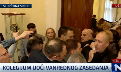 Neredi u Skupštini Srbije: Poslanici koalicije NADA pokušavaju da prekinu kolegijum, upali u salu s vuvuzelama