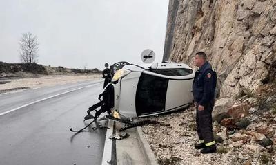 Vozilo udarilo u stijenu na Obzovici i prevrnulo se
