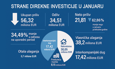 Neto strane direktne investicije u januaru 62,86% manje nego prošle godine