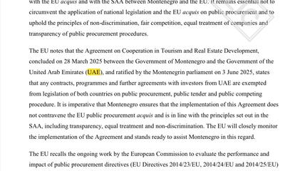 Mugoša: EU kroz zatvaranje poglavlja pet potvrdila da Vlada ne može primijeniti Sporazum sa UAE onako kako je zapisano