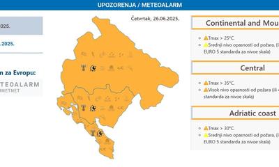 ZHMS izdao narandžasti meteoalarm za cijelu Crnu Goru: Temperature do 39 stepeni, pojačana opasnost od požara