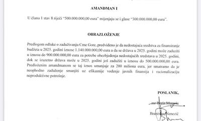 SD podnio amandman: Smanjiti zaduživanja za 200 miliona eura u 2025.