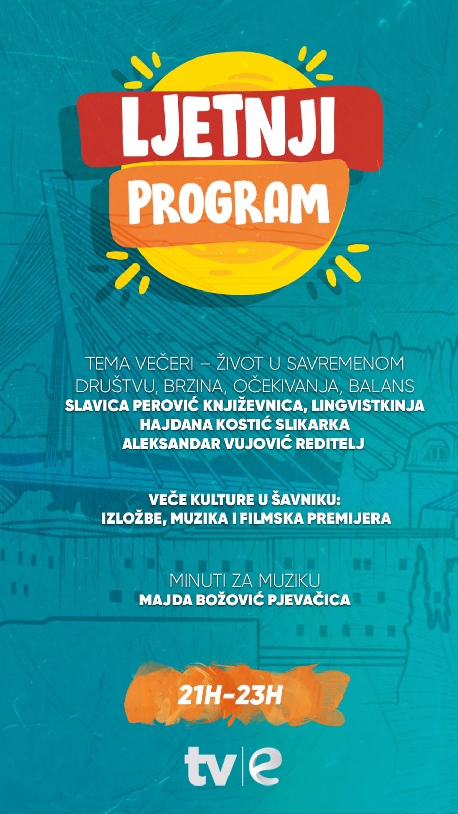 U večerašnjem izdanju Ljetnjeg programa, gledaoci će imati priliku da uživaju u razgovoru sa izuzetnim gostima iz svijeta umjetnosti, književnosti i pozorišta.