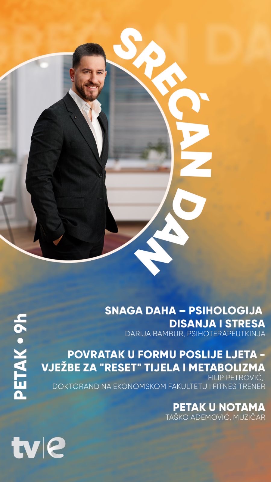 Petak u Srećnom danu je u notama. Uz sjajnu muziku Taško Ademović gledaoce Televizije E uvodi u vikend i dobro raspoloženje.