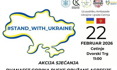 Cetinje obilježava godišnjicu ruske agresije na Ukrajinu: Akcija śećanja śutra na Dvorskom trgu