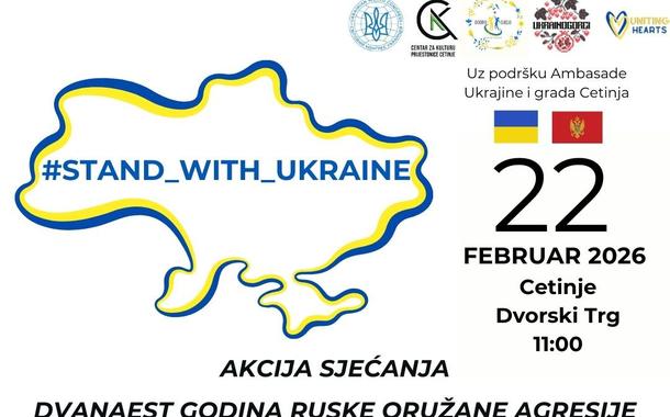 Cetinje obilježava godišnjicu ruske agresije na Ukrajinu: Akcija śećanja śutra na Dvorskom trgu