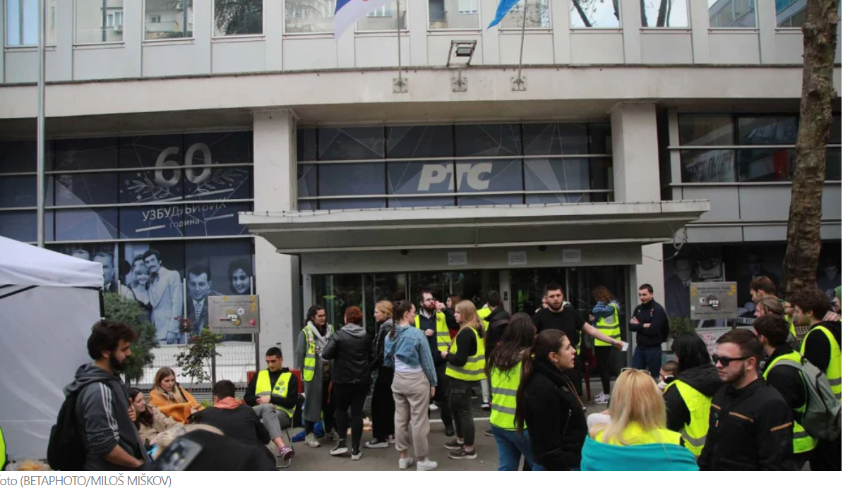 Studenti već četiri dana blokiraju Javni servis u Takovskoj ulici i u Košutnjaku zahtijevajući da se raspiše novi konkurs za članove Saveta Regulatornog tijela za elektronske medije (REM).