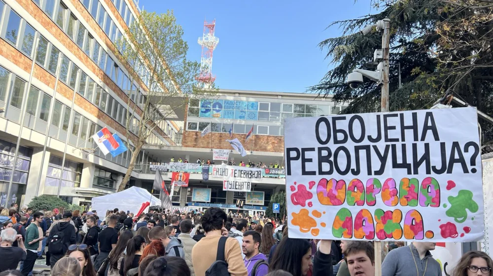 Studentska blokada ispred zgrada Radio-televizije Srbije u Takovskoj i na Košutnjaku uzlazi u 20 sat. Protest protiče u bučnoj atmosferi, ali bez incidenata.